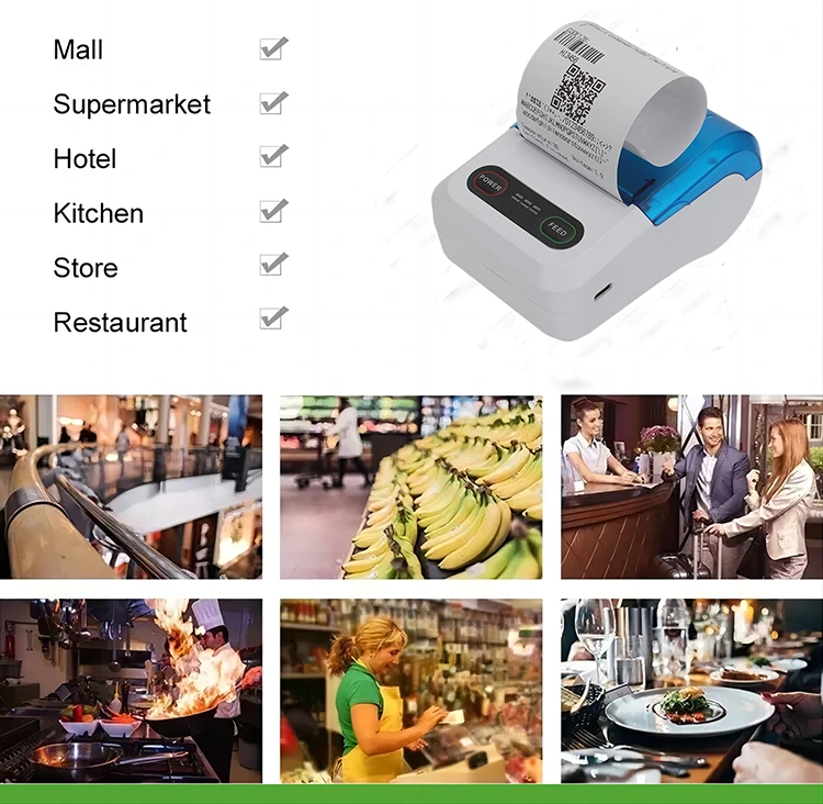 Термалните Bluetooth безжични принтери без мастило стават все по-популярни и се използват широко в множество индустрии като търговия на дребно, кетъринг, логистика и здравеопазване. Търговията на дребно може да го използва за бързо отпечатване на разписки за пазаруване. В кетъринг индустрията може да отпечатва поръчки мигновено. В логистичната индустрия може да отпечатва етикети за експресна доставка. В медицинската индустрия може да отпечатва медицински досиета и рецепти. Всички тези сценарии на приложение демонстрират високата ефективност и практичността на термичните Bluetooth принтери.