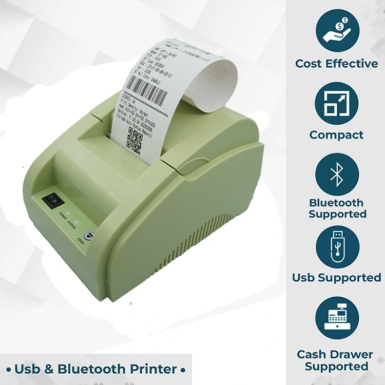 Този продукт се отличава с компактен, малък и преносим дизайн. Той може да се похвали с безжични възможности, включително USB и Bluetooth, което му позволява да се свързва с различни устройства като смартфони и таблети чрез Bluetooth за безжичен печат. Препоръчва се за магазини, ресторанти, куриерски услуги, билетни каси и мобилни продажби, неговата преносимост и бърза скорост на печат няма да ви разочароват.